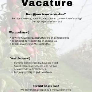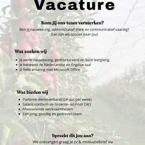 Zie onderstaande vacature en twijfel niet om te solliciteren via Marlissa@wellnerfruit.nl
