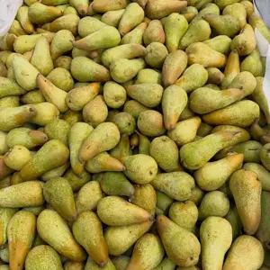 We hebben namelijk de eerste importperen van het seizoen binnengekregen. Een mooi moment, want naast de Conference peren — die hier het hele jaar door op de lijnen liggen — is het altijd leuk om weer met andere variëteiten en fruitsoorten te werken.
